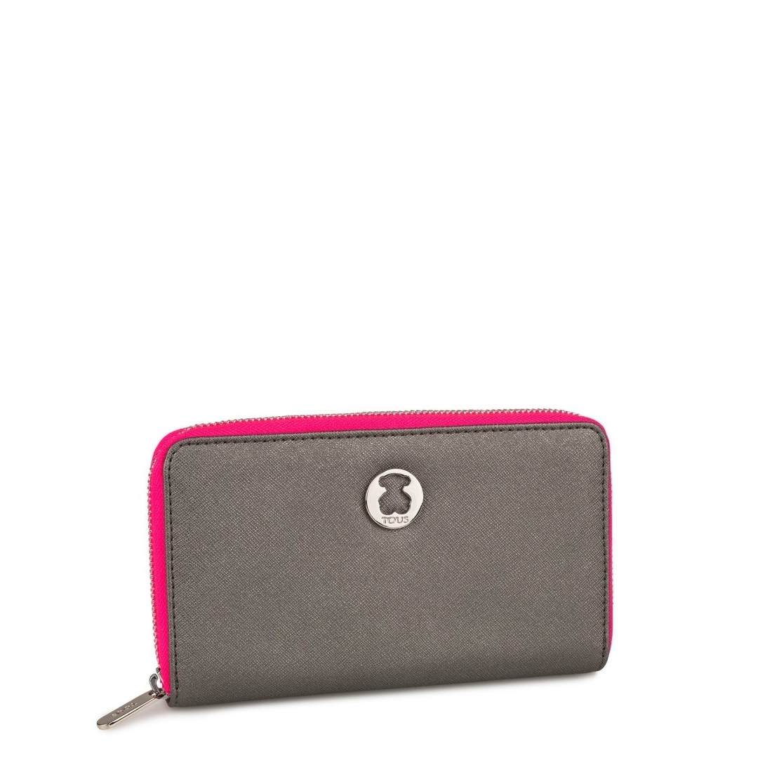 Dubai Saffiano collection wallet Amanda model. Color: silver, fichsia and lilac. Waterproof vinyl.