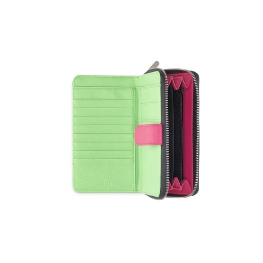 Billetero Dubai Saffiano Amanda, en color plata, fucsia y lila. Vinilo hidrófugo.