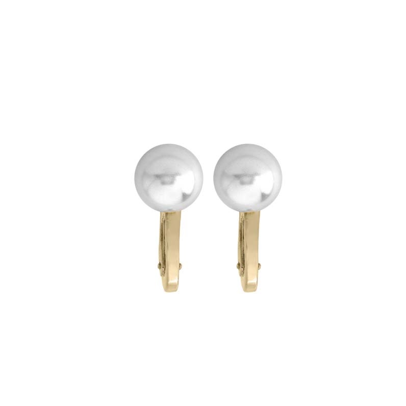 Golden Silver Short Earring with Pearl 8 mm and Clip-On