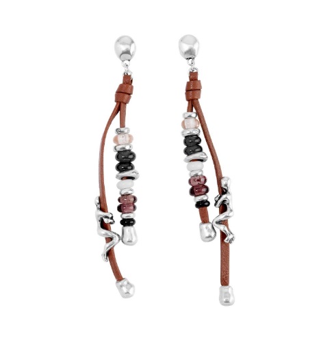 Estos Pendientes “Uno de 50” orientado para la Mujer, es de aleación de metales bañados en plata de 15 micras. Su color es Plateado. Tiene dos cordones de cuero. El nombre de esta joya es Liana. Inscripción: “Uno de 50”