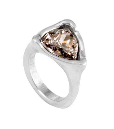 Anillo bañado en plata con diseño único de UNOde50 combinado con cristal de SWAROVSKI en un tono verdoso, realizado de manera artesanal en España.